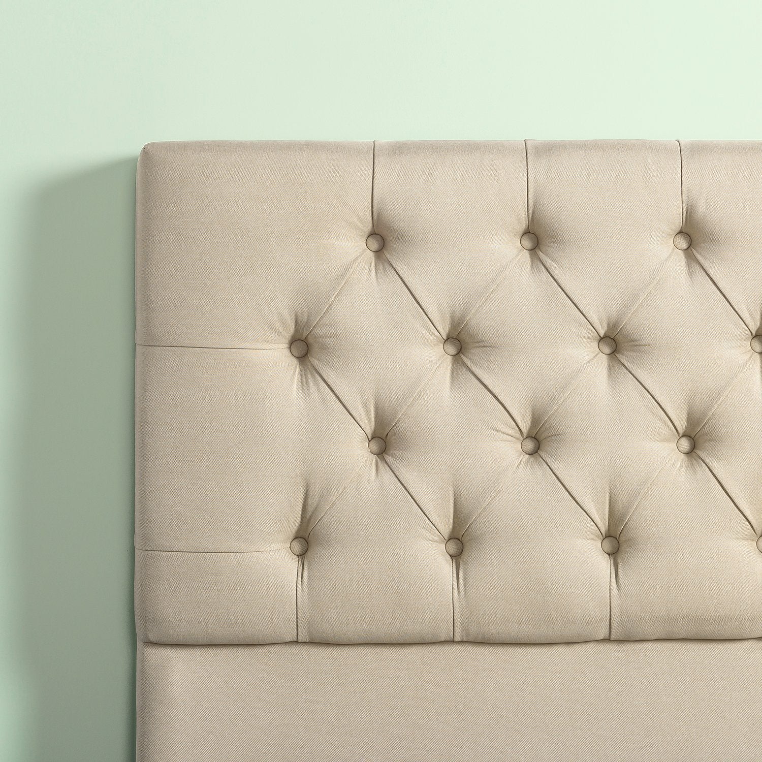 Button tufted coziness with this upholstered platform bed frame. Supports any Zinus mattress